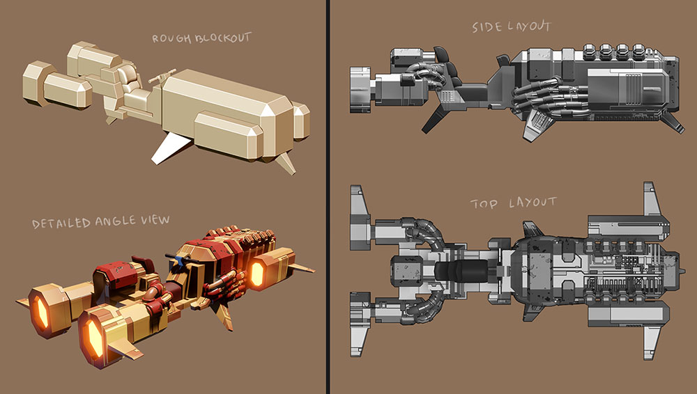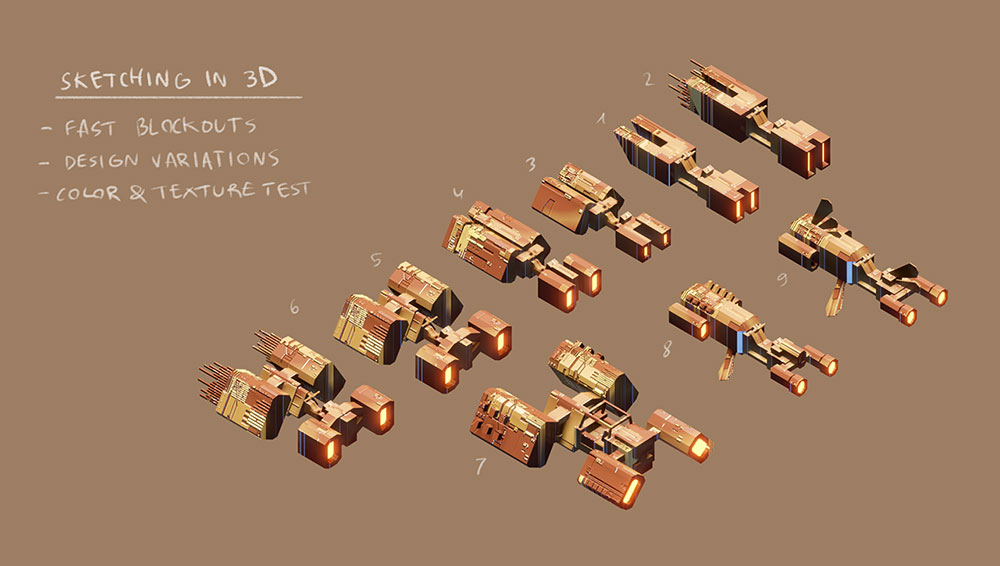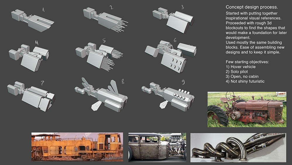 Personal project, exploring fast 3d sketching techniques and trim sheet texturing. Started from gathering reference, transitioned into basic sketches and blockouts, and later on into 3d with textures.