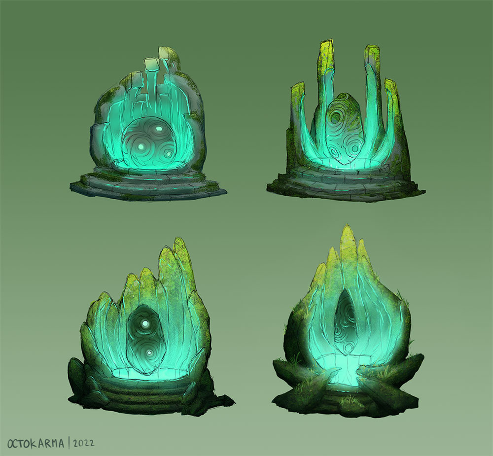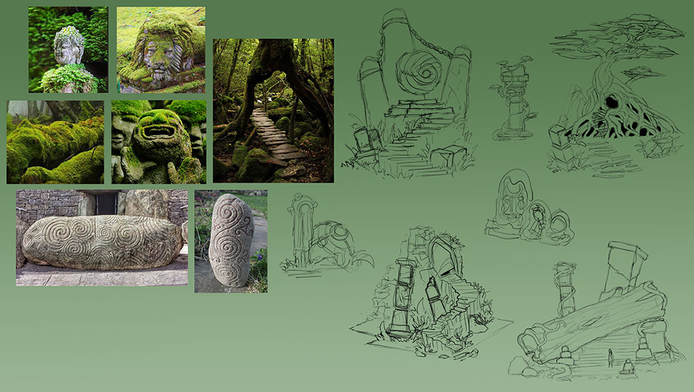 Home Concept Art Forest Location concept Concept Art Forest Location concept Personal exploration of a fantasy environment. From research and sketches to colored prop layouts.