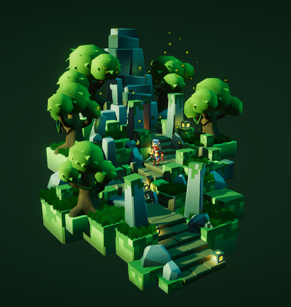 Real time stylized low poly level example. Made few building blocks in Blender and put together the level in Unity.